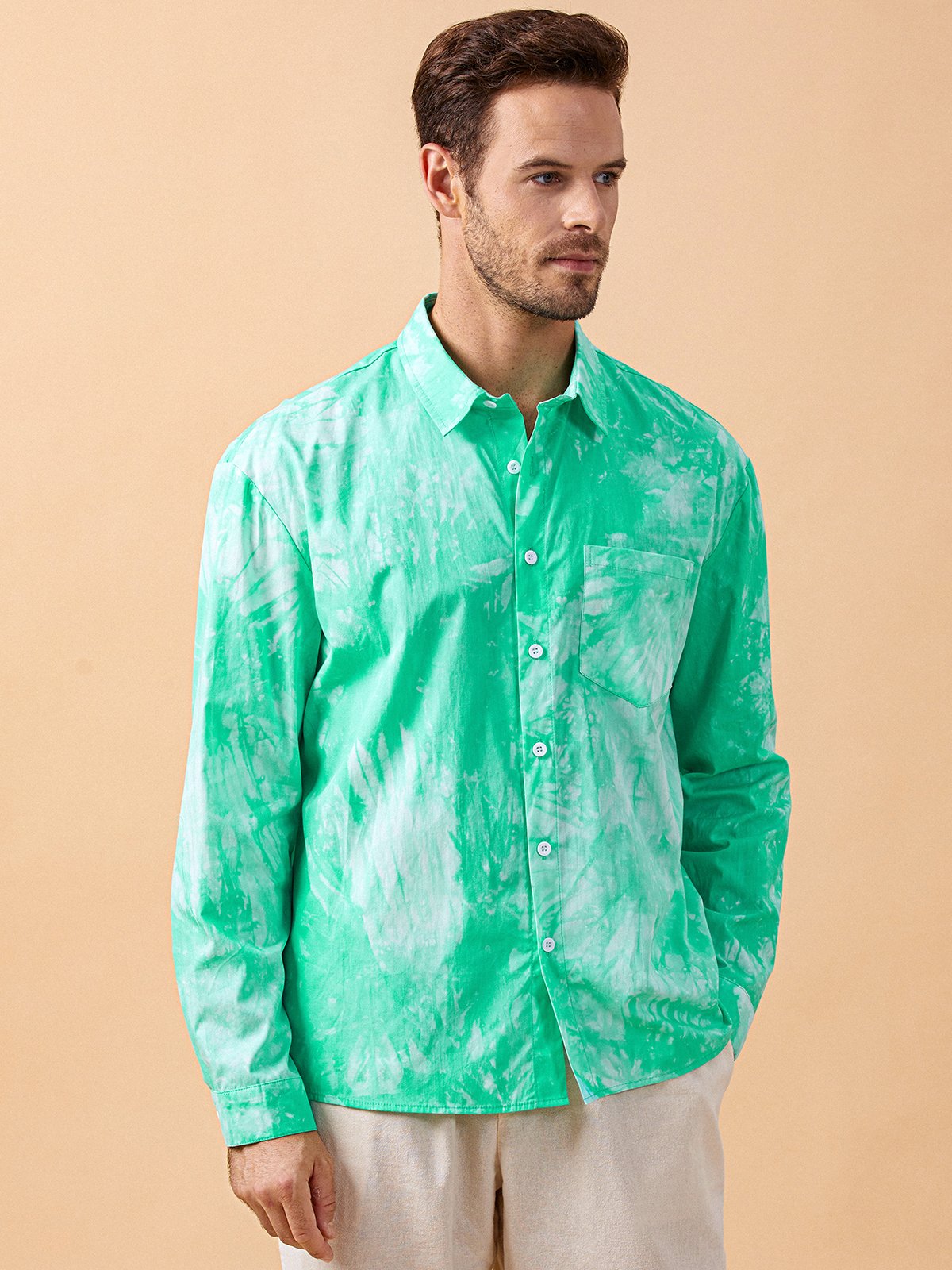 Algodón Gradiente Color Pecho Bolsillo Manga Larga Casual Camisa